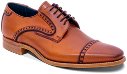 This elegantly crafted mens shoe is a must-have for formal occasions or everyday comfort. The stunning antique rosewood calf is burnished and handpainted on the last before the sole is attached to keep the clean lines of the natural welt. The punched detailing creates interest and adds an extra element to the shoe. This style has a soft but durable rubber sole for added comfort and insulation during the winter months. This shoe can be paired with a smart suit for a formal occasion or dressed down for a more casual look.